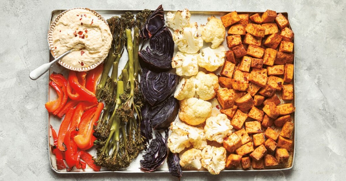 Vegan Baked Tofu and Roasted Vegetable Buddha Sheet Pan Meal - VegNews