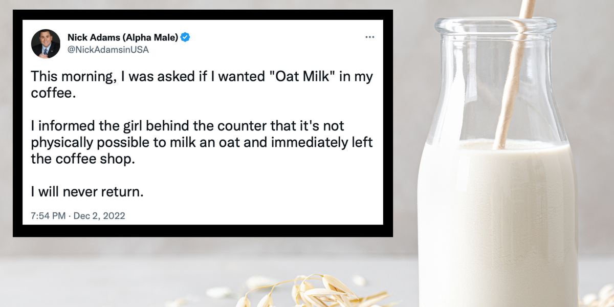 0 Response to "Right-wing commentator and 'alpha male' gets offended by oat milk - indy100"